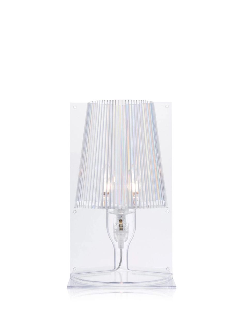 L’icona classica dell’abat-jour da comodino viene rivisitata dalla tecnologia di Kartell per trasformarsi in prodotto industriale in svariate tonalità cromatiche. La forma di Take nasce dalla congiunzione di due parti speculari: due lastre piatte, rettangolari che da bidimensionali al centro assumono la forma e il volume della “semi-lampada”. La plissettatura interna del diffusore impreziosisce l’oggetto creando, quando accesa, un gioco di riflessi.