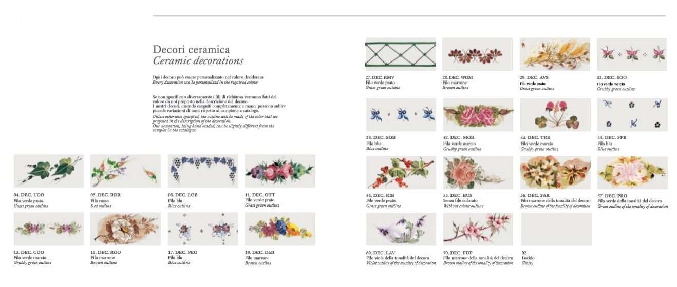 I decori disponibili della ceramica possono essere consultati dalla foto allegata.