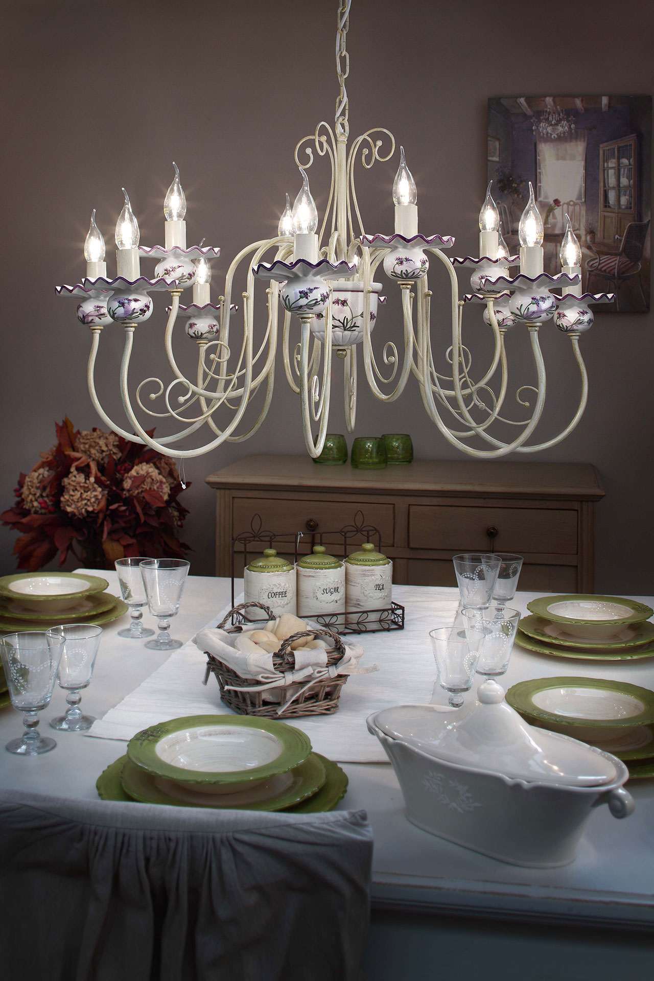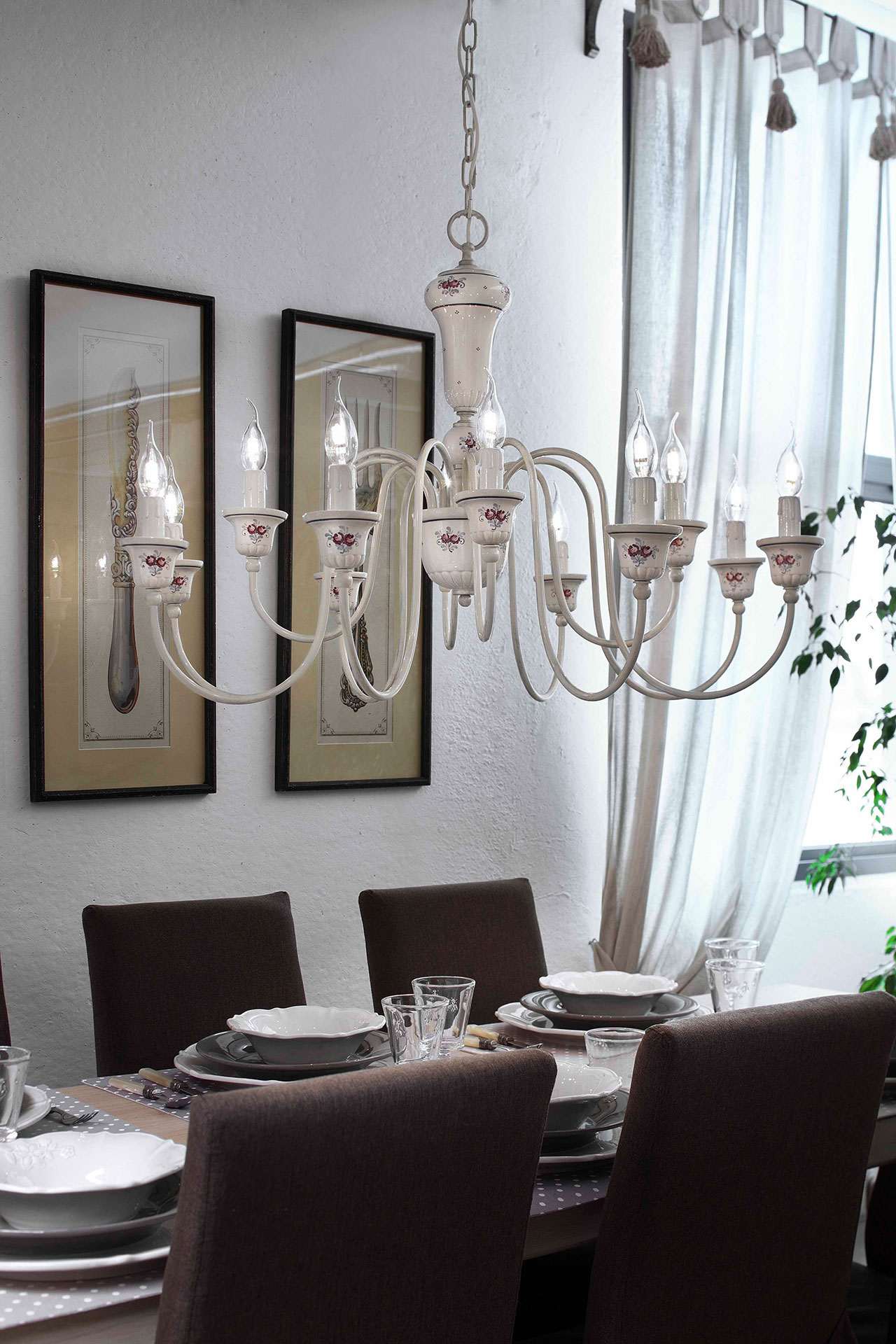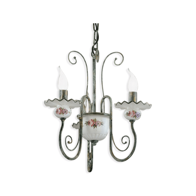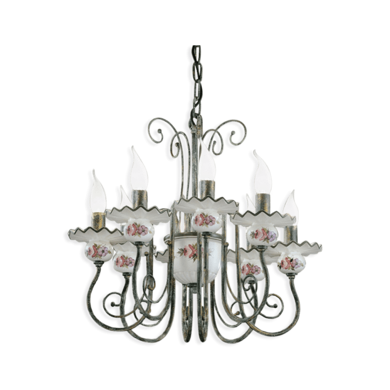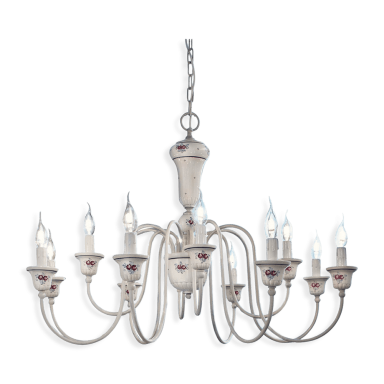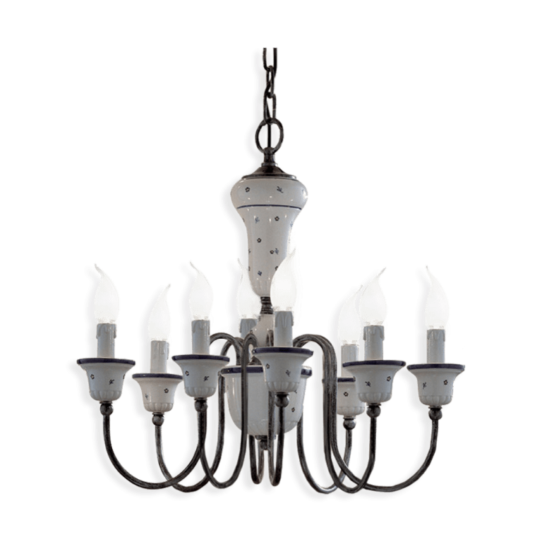 Classic Sanremo lampadario con diffusori in ceramica decorata e componenti in metallo.