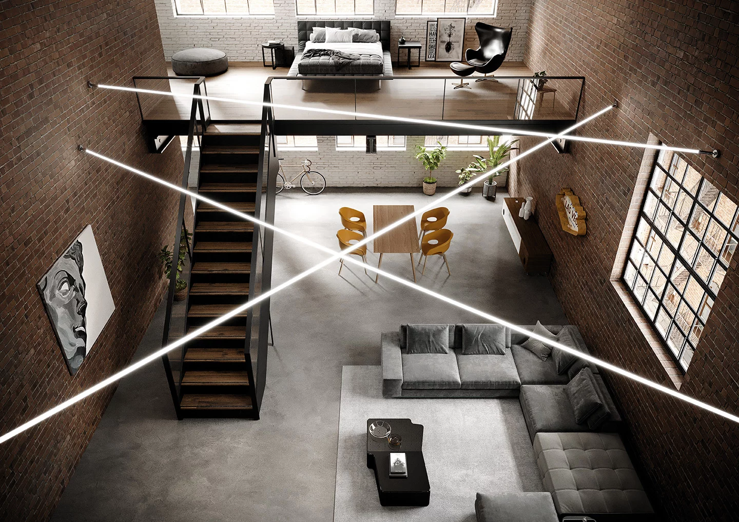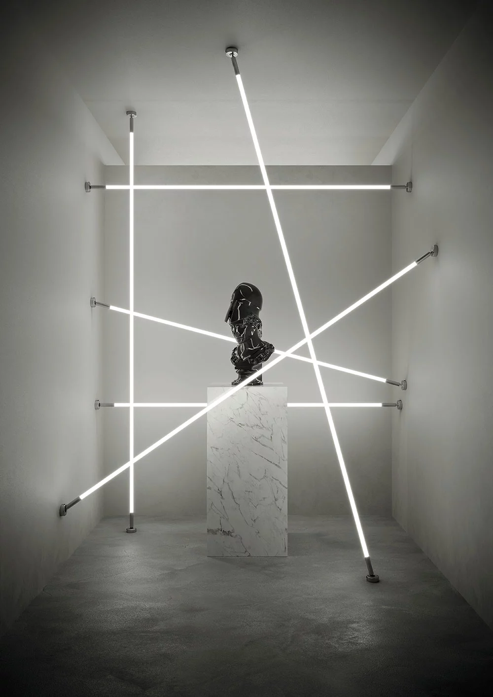 Linea è un sistema di elementi illuminanti lineari flessibili a led. Realizzati con un’anima in acciaio armonico, Linea può essere tesa tra due pareti, non necessariamente parallele, grazie agli snodi tensorialle estremità del sistema,ma può anche essere installata a soffitto e composta in forme geometriche libere grazie aisupporti che vanno a guidarel’anima interna della lampada.Una copertura siliconica permette una diffusione uniforme della luce generata da due strip led contrapposte con potenza combinata fino a 1900 lumen/metro 3000K.