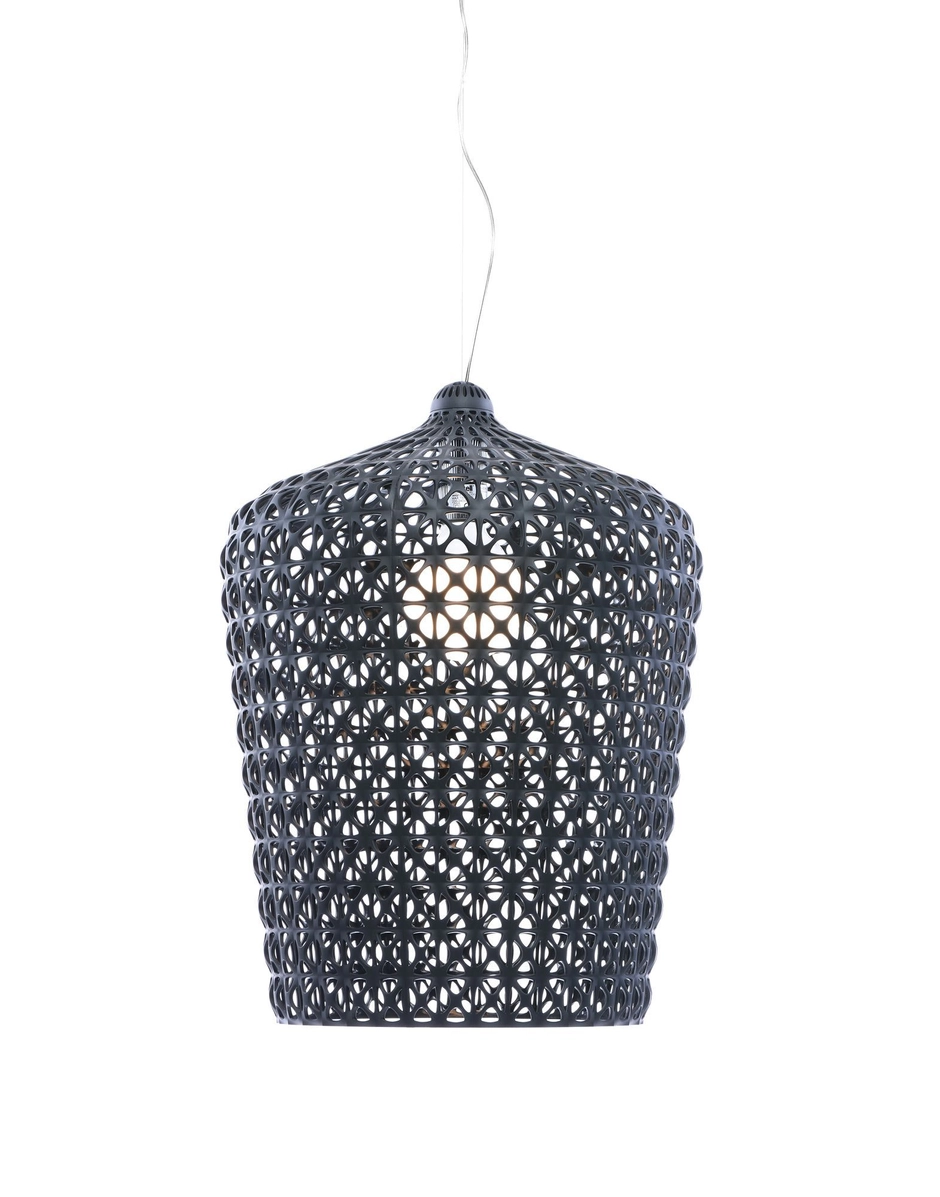 Sospensione LED dalla caratteristica superficie traforata da cui si diffonde la luce in policarbonato 2.0 da materia prima rinnovabile trasparente o colorato in massa. Sebbene i materiali e i metodi siano dei più moderni, la lampada presenta una linea piuttosto classica, quasi barocca. I forellini nel paralume generano interessanti giochi di luci ed ombre nel momento in cui si accende la lampada. Il paralume è realizzato in tecnopolimero termoplastico stampato a iniezione con questa tecnica si riesce ad ottenere una superficie traforata che sembra un pizzo. Alcune delle creazioni Kartell sono nel frattempo dei veri classici del design. Nuovo policarbonato 2.0, materiale che nella fase di sintesi, utilizza una materia prima rinnovabile derivante dall’industria della cellulosa e della carta.