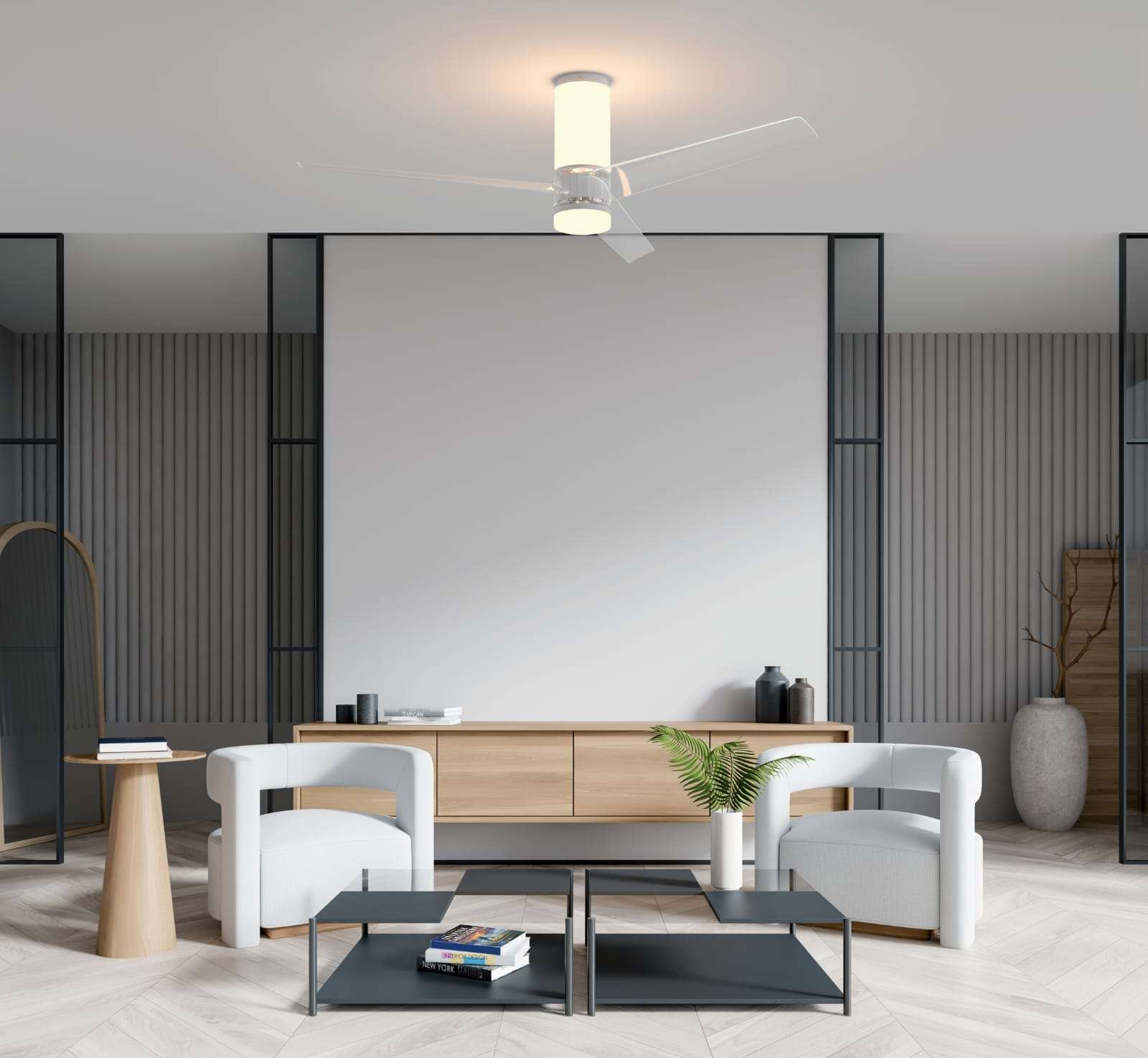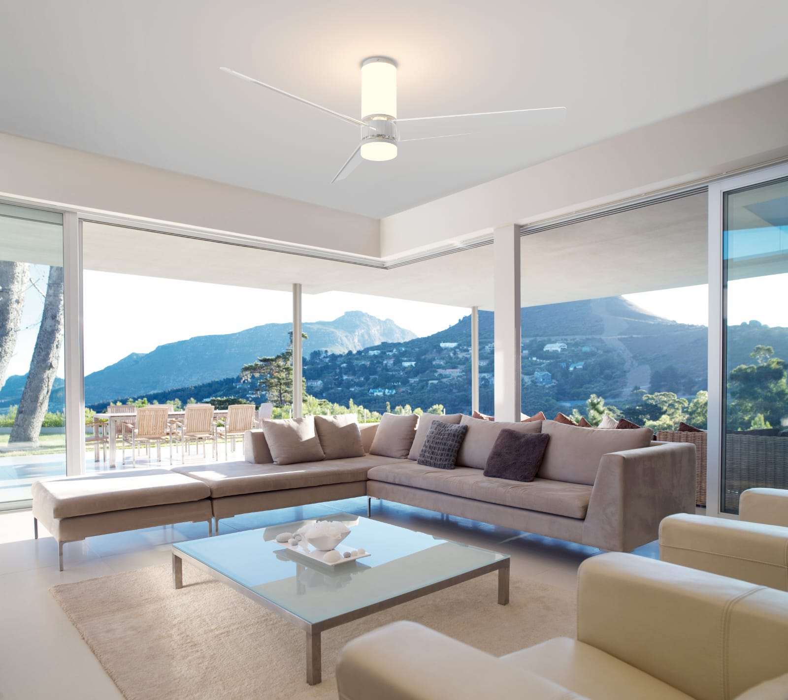 Il ventilatore da soffitto Light Up&Down è pensato per spazi superiori ai 20 m² che richiedono eleganza e modernità. Le pale trasparenti e il corpo sottile dotato di illuminazione LED diffusa lo rendono un elemento d’arredo discreto e raffinato.