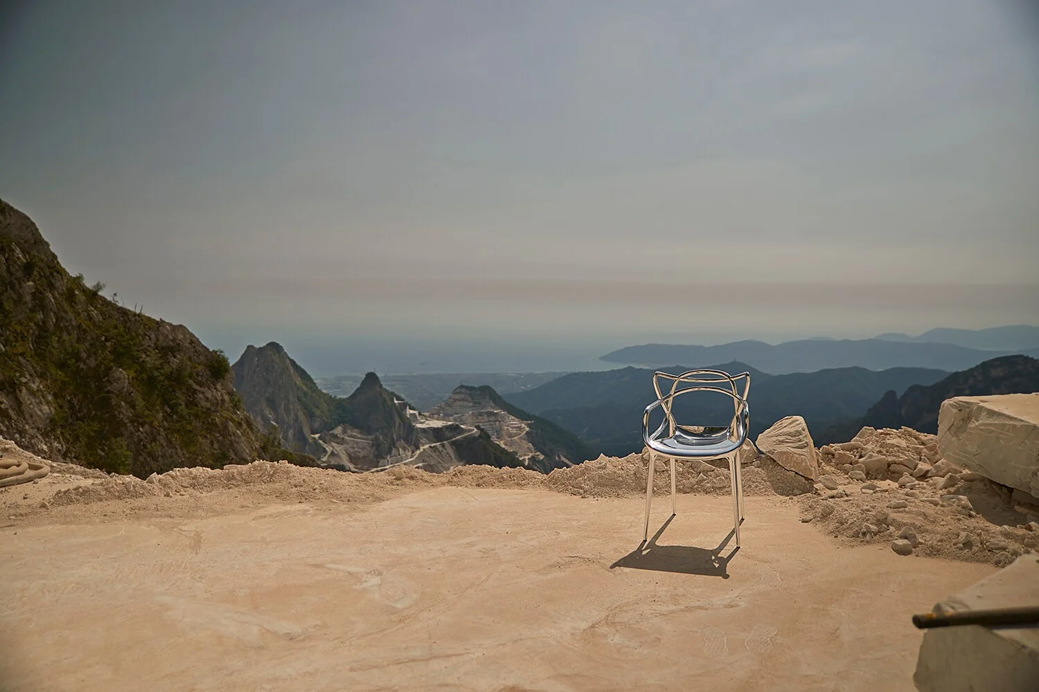 Elegante e pratica, la sedia Masters è un acuto omaggio a tre sedie-simbolo, rilette e reinterpretate dal genio creativo di Starck. La “Serie 7” di Arne Jacobsen, la “Tulip Armchair” di Eero Saarinen e la “Eiffel Chair” di Charles Eames intrecciano le inconfondibili silhouette in un ibrido sinuoso, per dare vita a una fusione di stili originale e accattivante. Leggera e pratica, Masters può essere utilizzata anche all’esterno. Per un effetto più prezioso è proposta anche in finiture metallizzate.